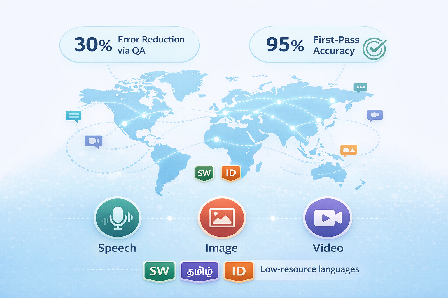 These aren't edge cases—they're daily for global AI. English-trained models flop 40% on non-Latin scripts without proper alignment; our low-resource languages expertise plus turnkey video annotation bridges it. Hybrid wins: AI handles scale, humans catch what algorithms miss, QA quantifies the rest objectively.