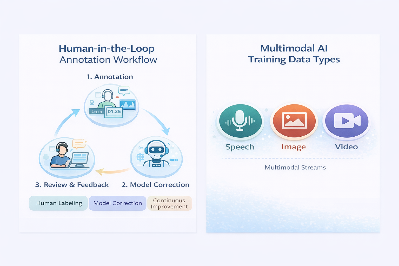 - Build pipelines with clear guidelines, pilot projects, and inter-annotator agreement checks (>95% target) to minimize errors in text, image, video, and speech data.