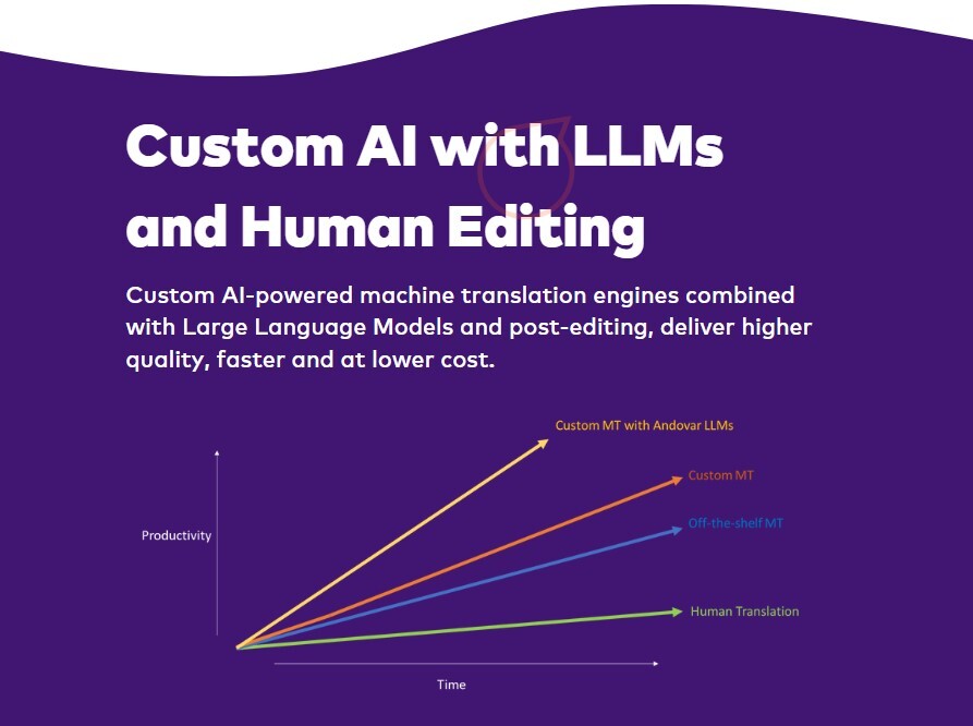 Andovar uses cutting-edge AI platforms including paid enterprise AI-powered machine translation and proprietory large language models (LLMs) to speed up and enhance the translation process. AI assists in accurately and efficiently localizing content without replacing the crucial human insight needed for cultural and contextual nuances.