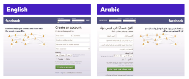 In these screenshots, you see the English site's left-to-right text flow and the Arabic site's reversed layout and text flow.
