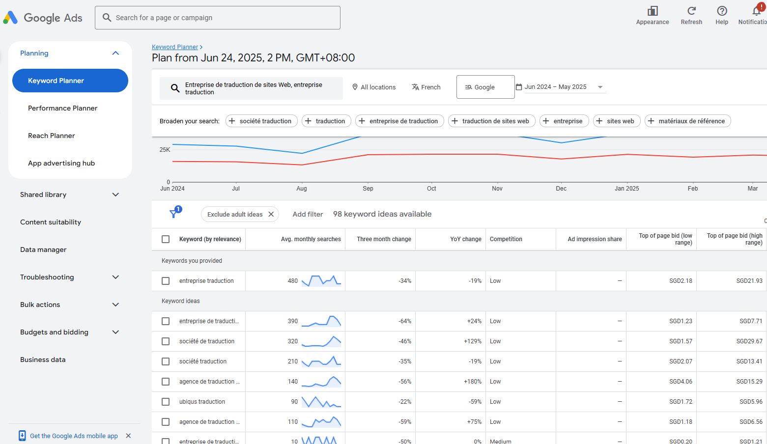 Google Keyword Planner: ‘Find Keywords’ function - ‘Localization Company’ (In French)